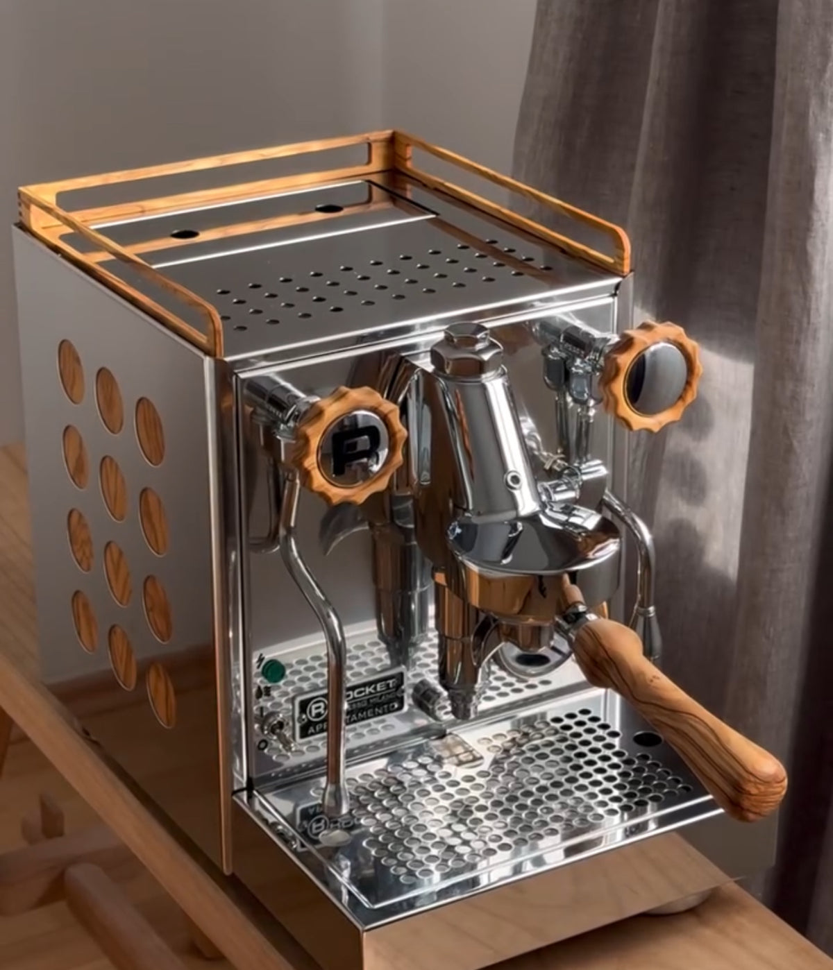 To nie tylko modernizacja designu – to sposób na stworzenie ekspresu do kawy, który wydaje się osobisty. Każdy kawałek drewna ma swoją własną strukturę, swoje własne wyrażenie. Efekt? Rocket Appartamento, który się wyróżnia – zarówno w odczuciu, jak i charakterze.