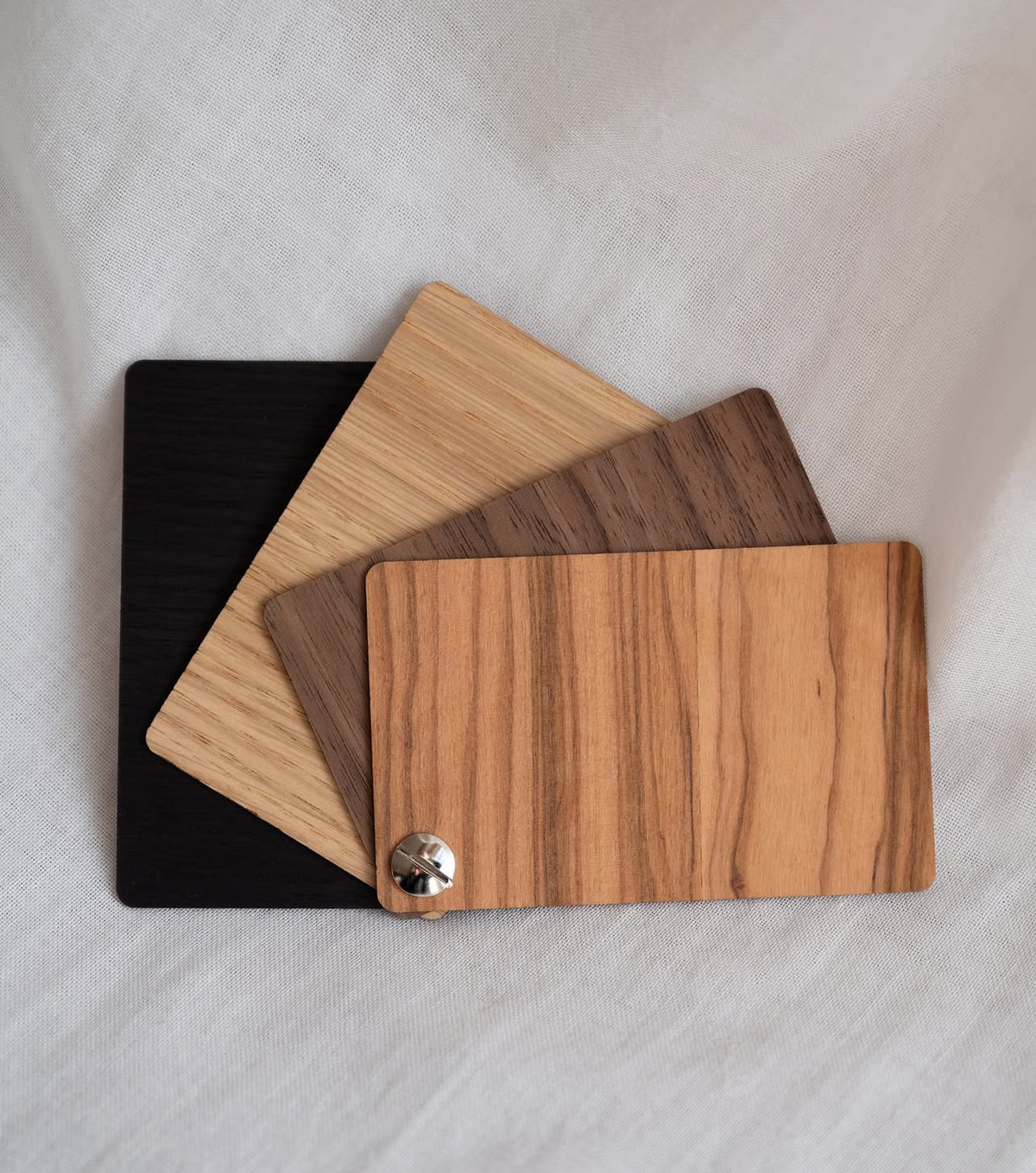 Niepewny, które drewno pasuje do Twojego stylu? Dzięki naszemu zestawowi próbnemu otrzymasz cztery prawdziwe próbki drewna – to samo drewno, które używamy we wszystkich naszych produktach. To idealny krok dla Ciebie, jeśli rozważasz inwestycję w boczne panele do swojej ekspresu do kawy lub kompletny zestaw uchwytów, pokrywę młynka lub inny detal drewniany z Wiedemann.