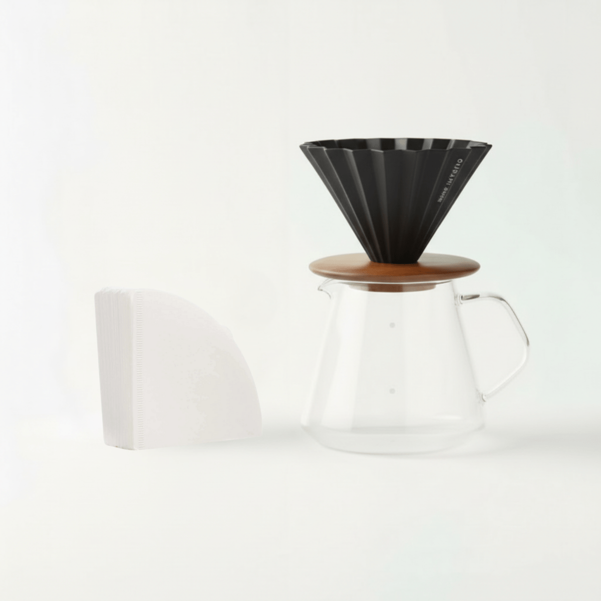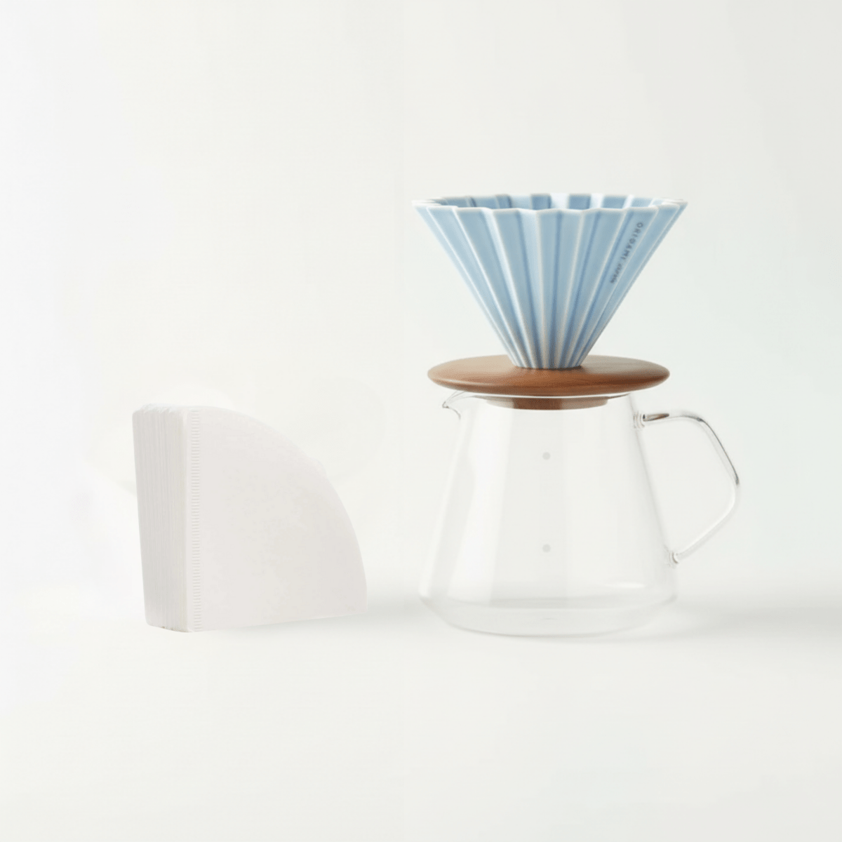 Odkryj japońską sztukę pour over z tym kompletnym zestawem od Origami. Wszystko, czego potrzebujesz, aby zaparzyć wyjątkową kawę z precyzją i elegancją – od drippera po dzbanek i filtry.