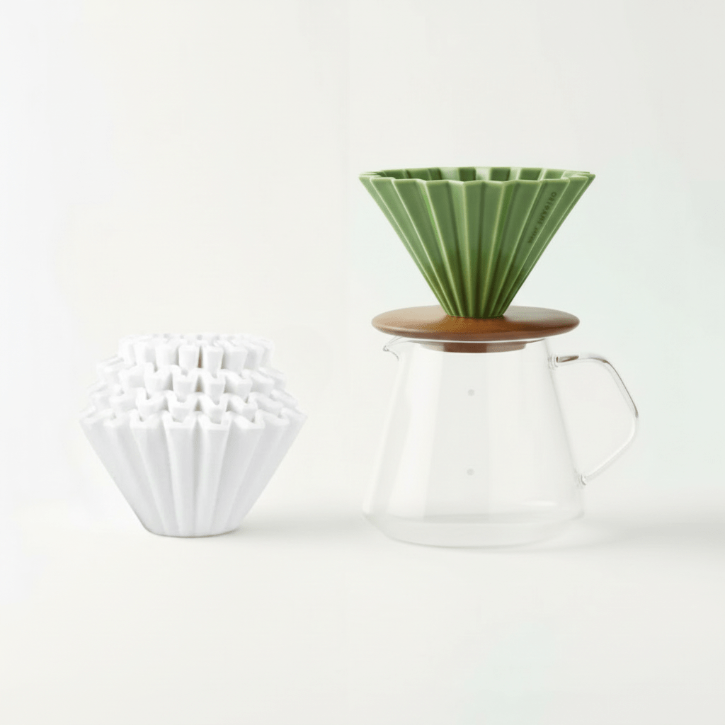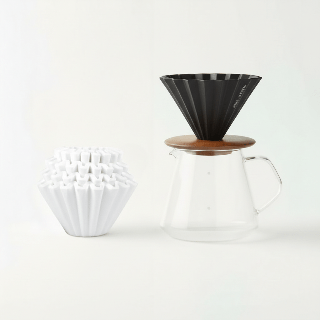 Dripper Origami stał się ulubieńcem baristów na całym świecie dzięki swojej zdolności do podkreślania naturalnej słodyczy i złożoności kawy. Z tym zestawem otrzymujesz wszystko, czego potrzebujesz, aby doświadczyć japońskiej kultury parzenia kawy w domu – od pierwszego zaparzenia po idealną filiżankę.