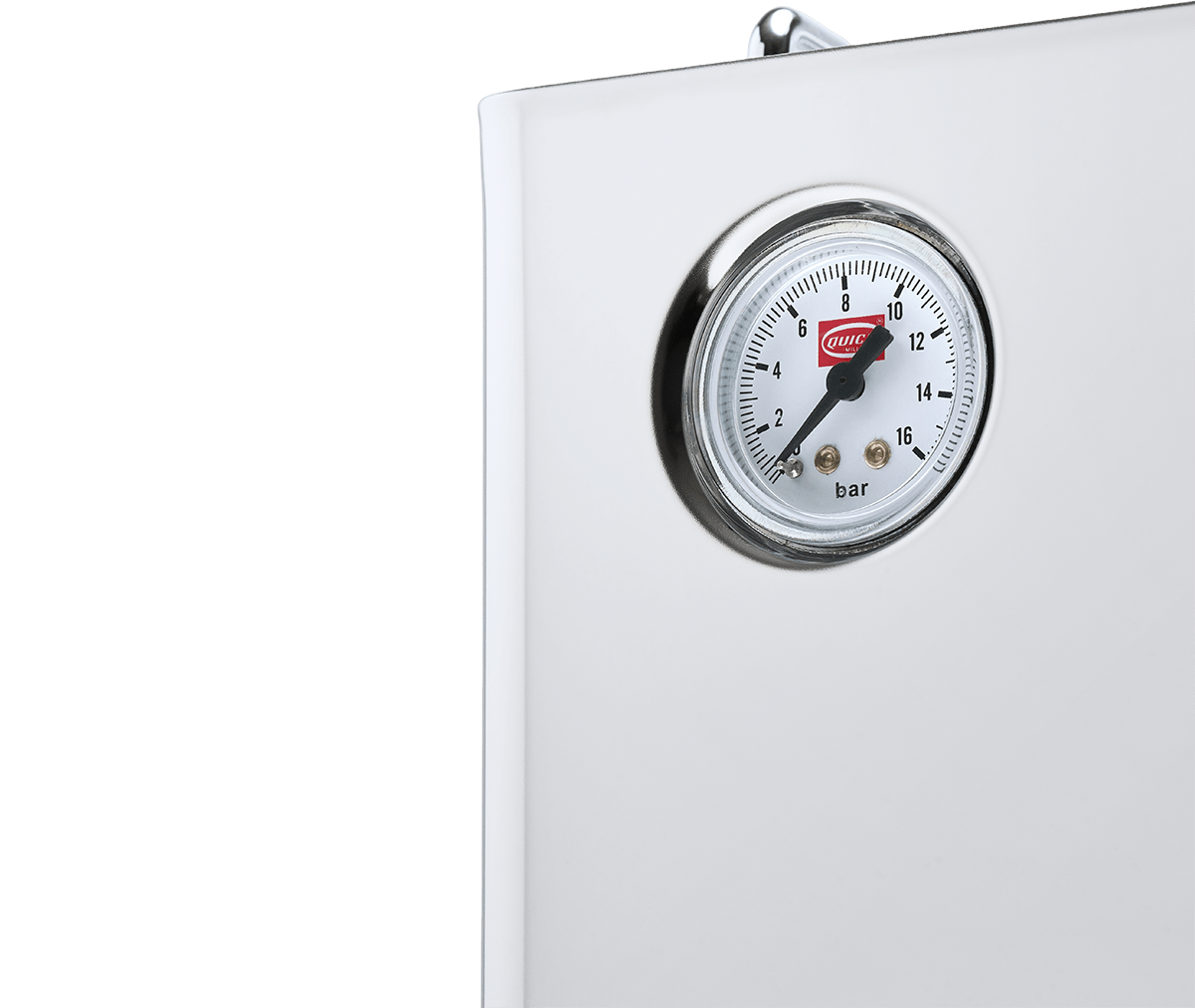 Manometr (0–16 bar) pokazuje ciśnienie parzenia, dzięki czemu możesz dostosować mielenie i dozowanie dla precyzyjnej i zrównoważonej ekstrakcji.