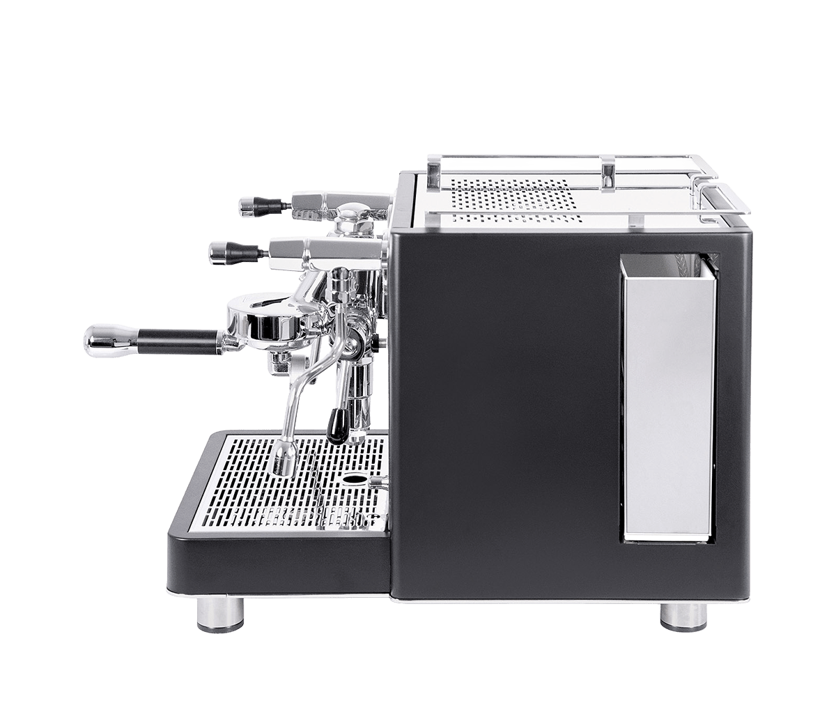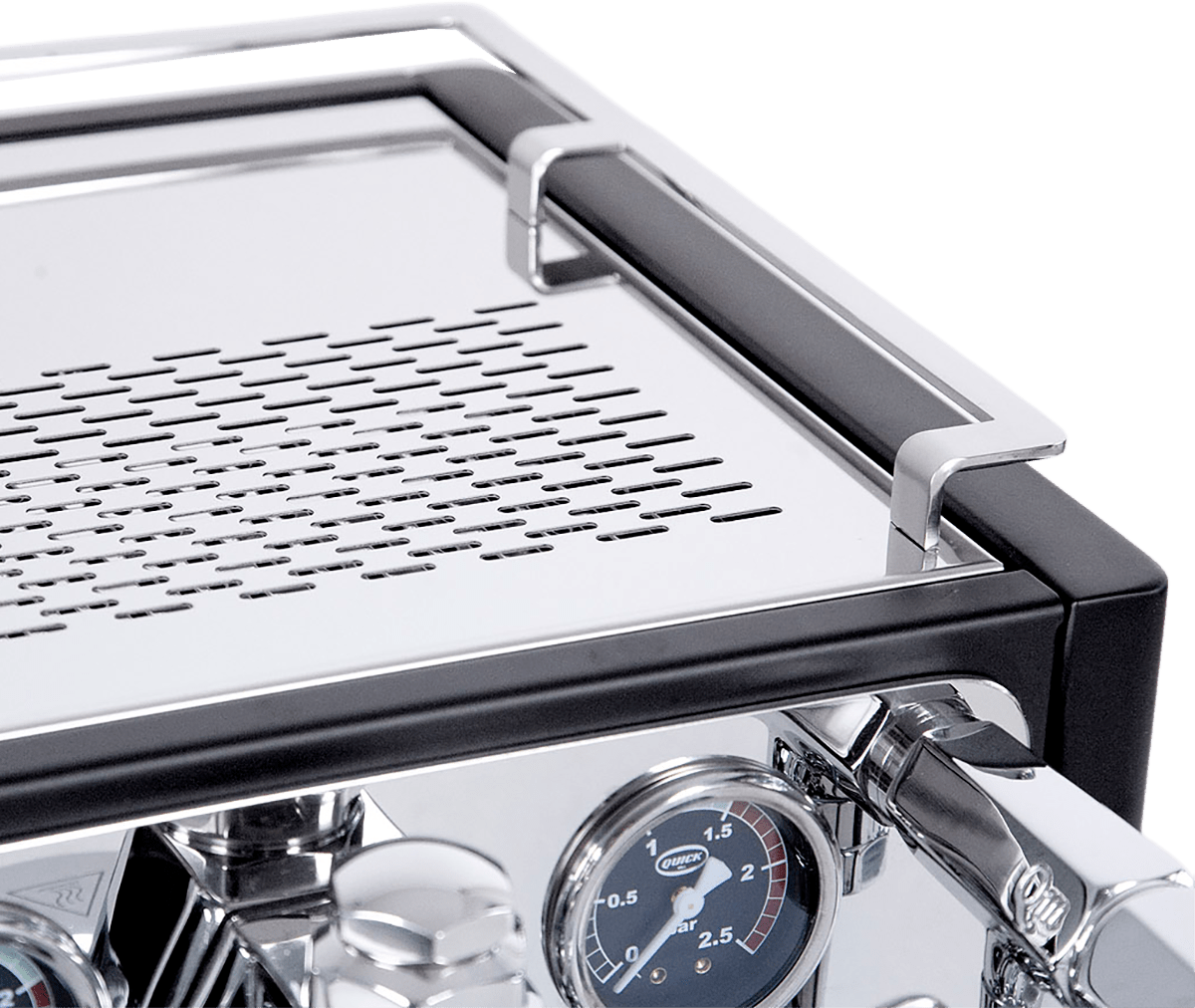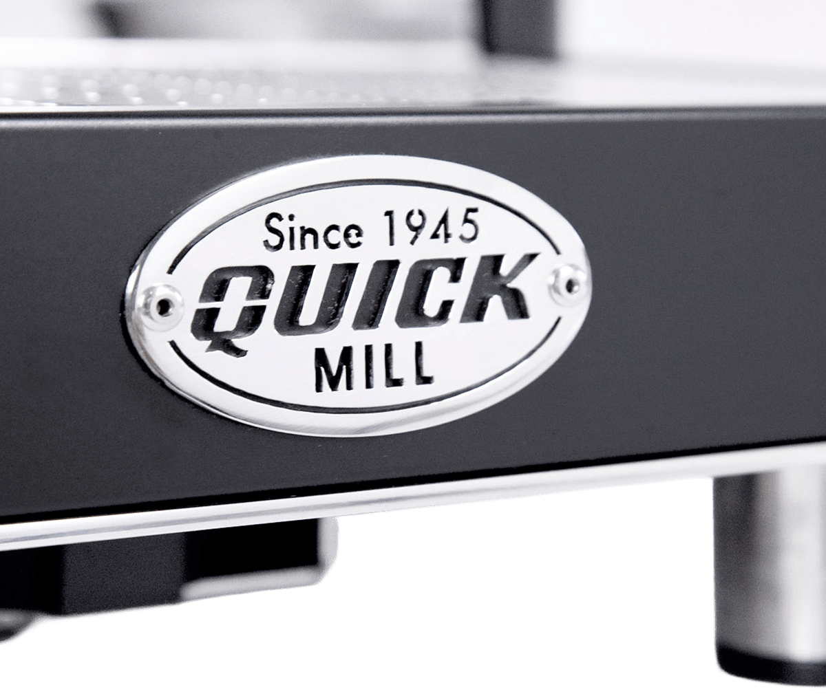 Całkowicie stalowa konstrukcja z głębokimi czarnymi detalami, joystickami i grupą zaparzającą Quick Mill tworzy profesjonalny wygląd, który pasuje zarówno do kuchni, jak i miejsca pracy.