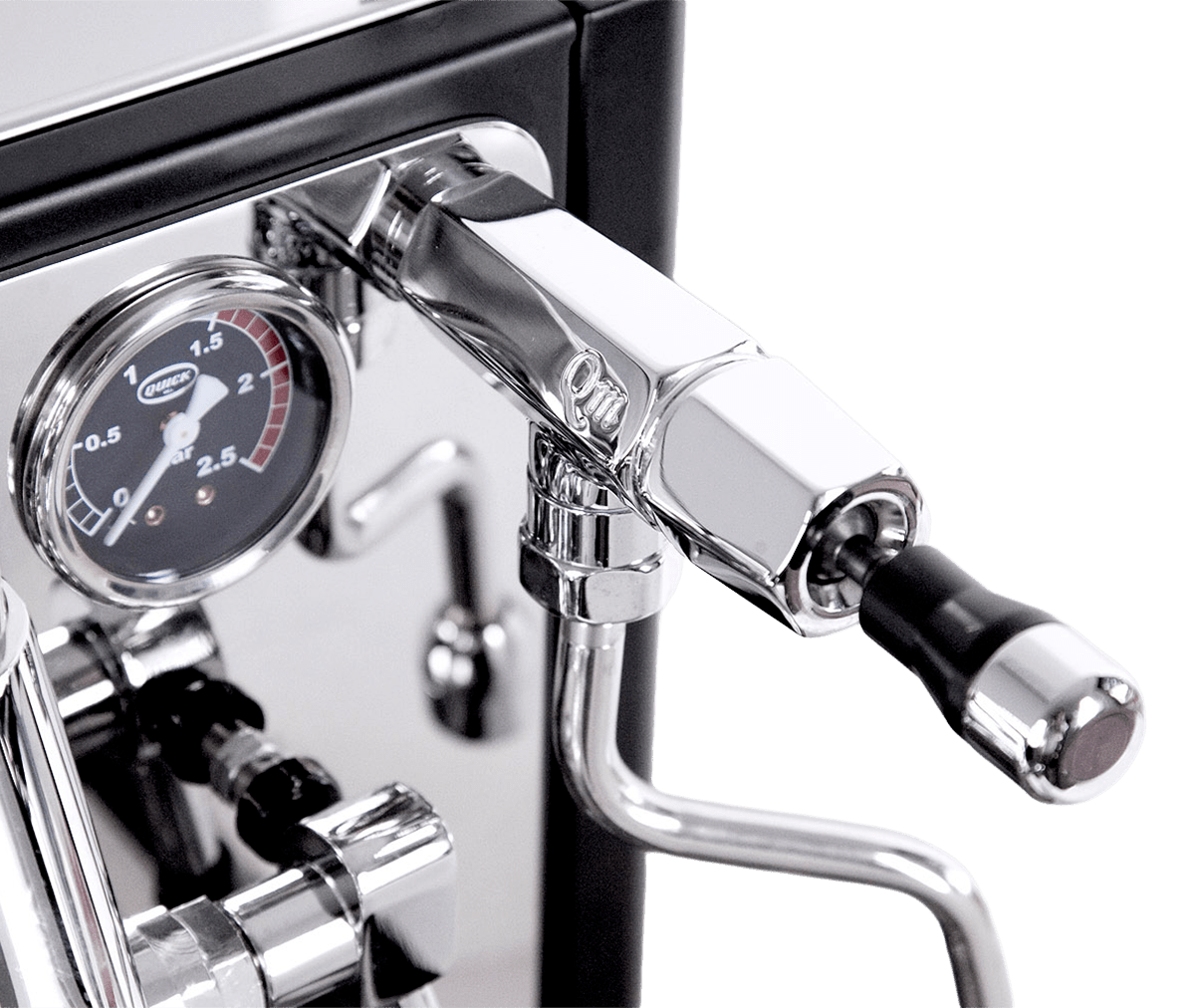 Oddzielne wskaźniki pokazują ciśnienie pompy (0–16 bar) oraz ciśnienie bojlera (0–3 bar). Zapewnia to doskonały przegląd podczas precyzyjnego dostrajania ekstrakcji.