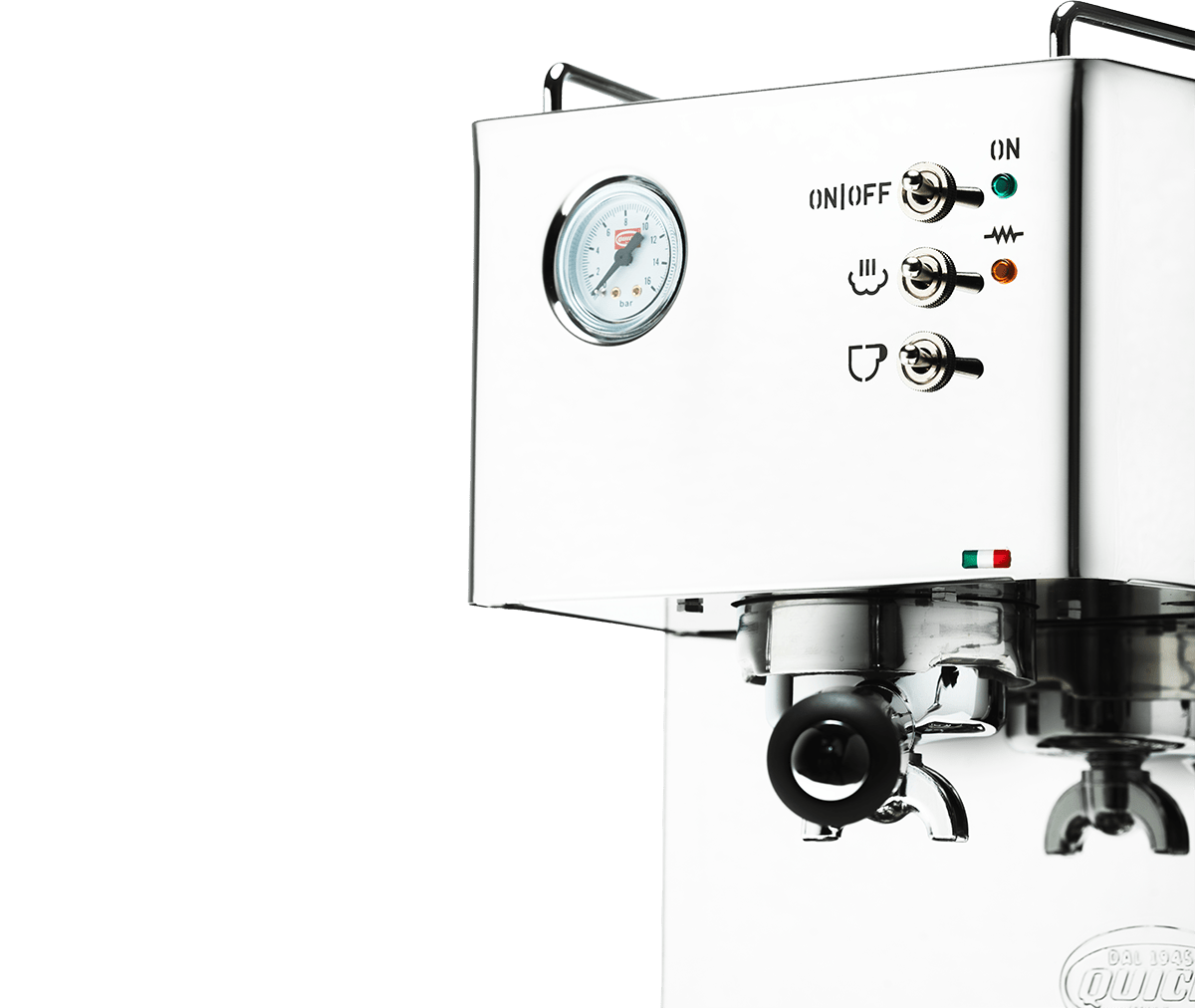 Materiał: Stal nierdzewna; grupa zaparzająca Quick Mill z uszczelką O-ring; dysza parowa z aeratorem