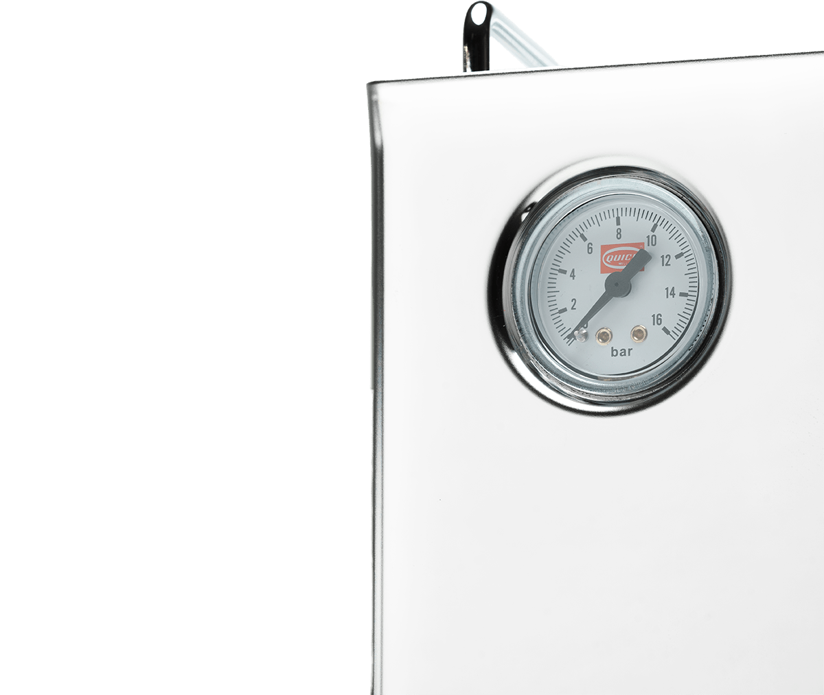 Zintegrowany manometr (0–16 bar) pokazuje ciśnienie parzenia w czasie rzeczywistym i pomaga dostosować mielenie, dozowanie oraz ubijanie kawy, aby uzyskać optymalną porcję.