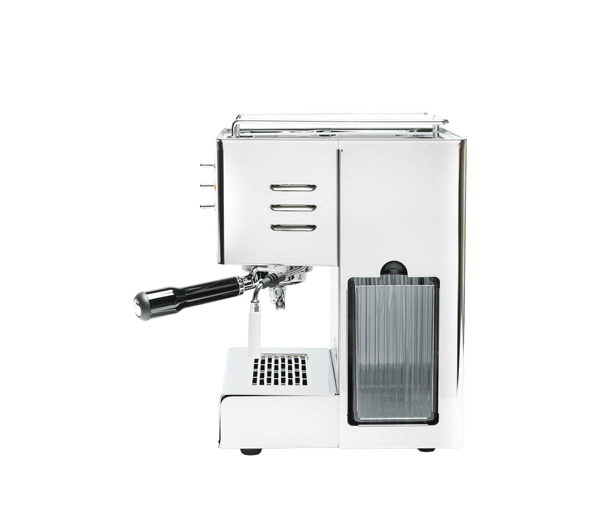 Orione posiada klasyczne dźwignie sterujące, wyraźne lampki kontrolne dla podgrzewania i pracy oraz praktyczny boczny zbiornik, który ułatwia uzupełnianie bez konieczności przesuwania urządzenia.