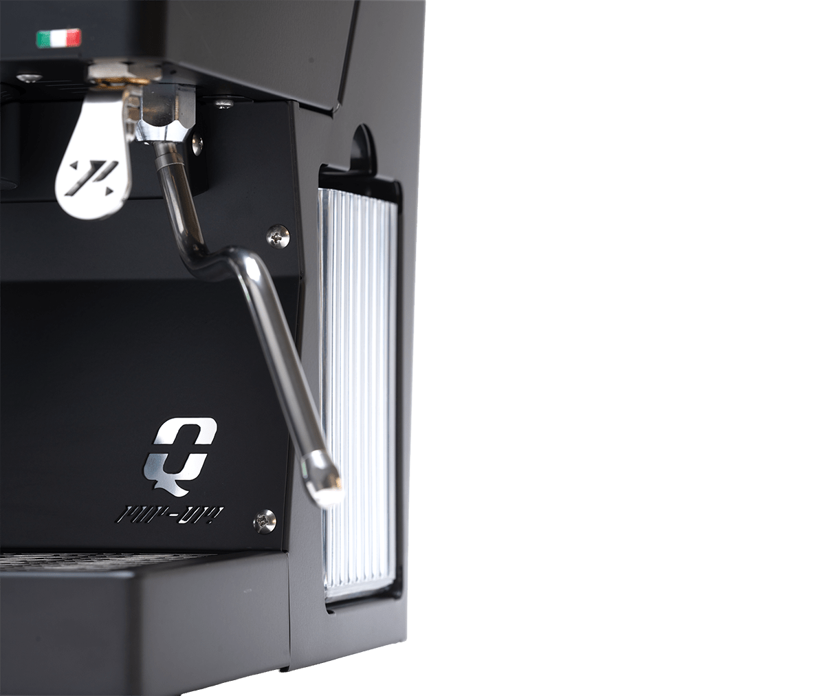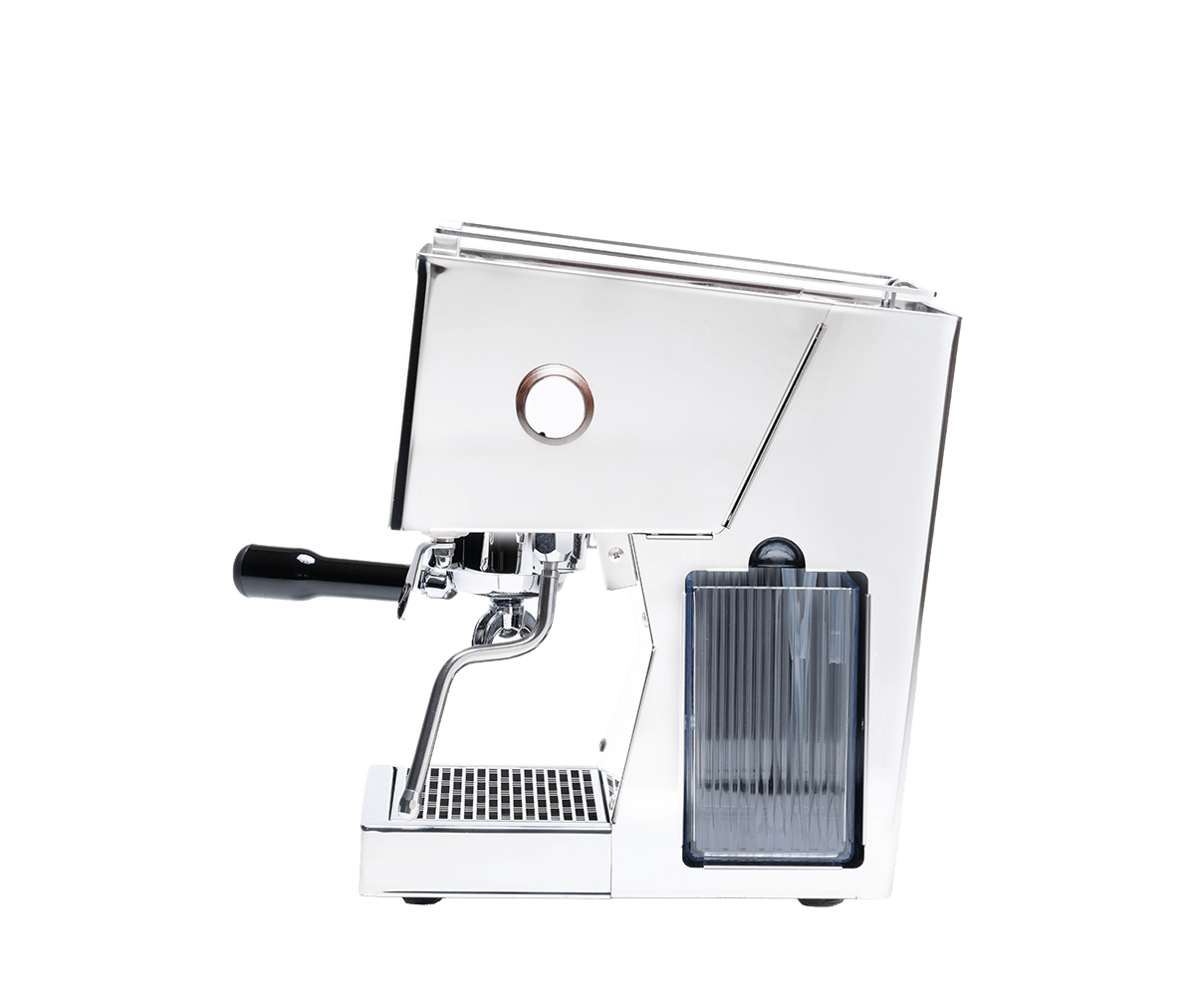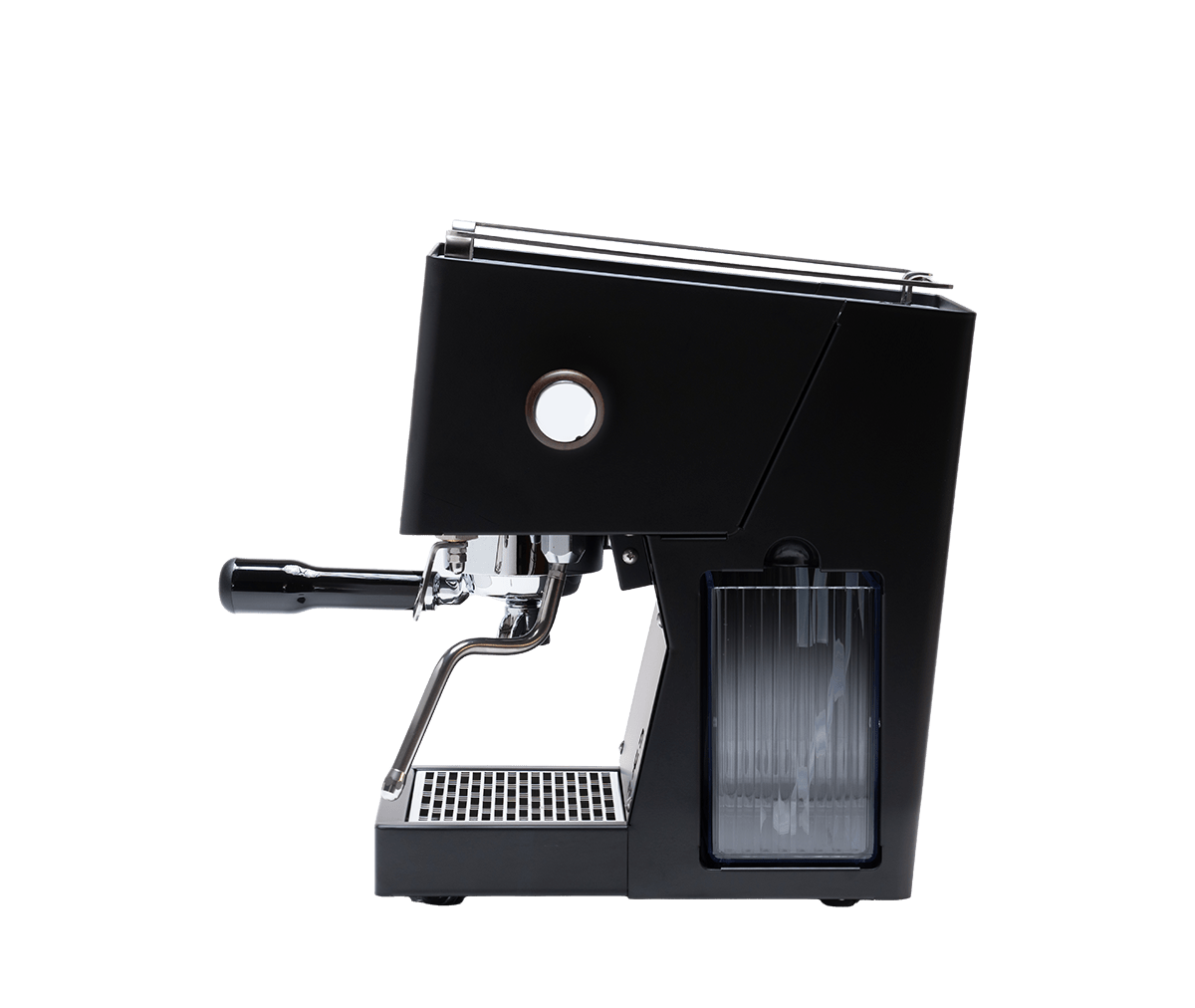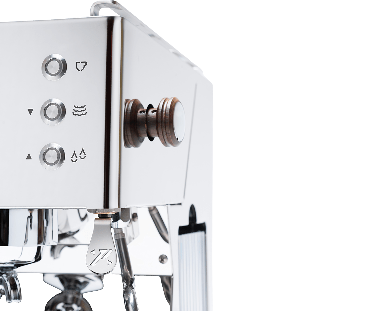 Urządzenie dostępne jest w wersji ze stali nierdzewnej lub matowej czerni, obie z drewnianymi detalami na pokrętle pary i portafiltrze. Pierścień grupy zaparzającej zapewnia stałe ciepło i niezawodną jakość wykonania.