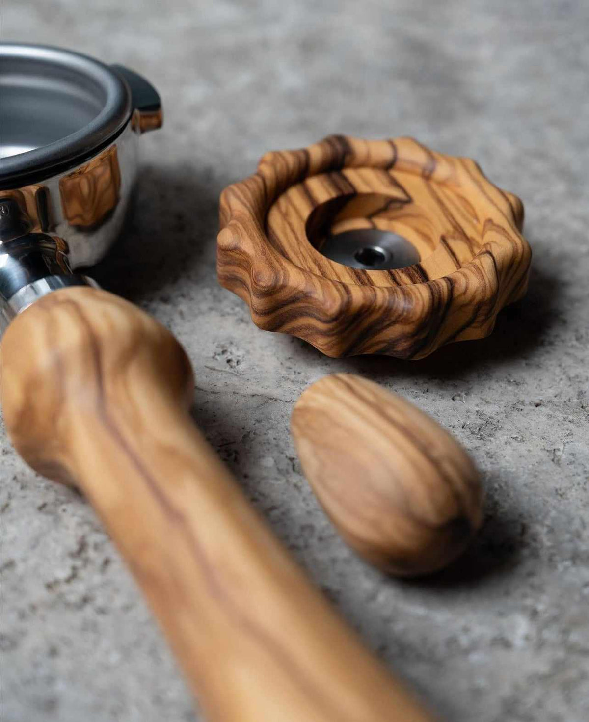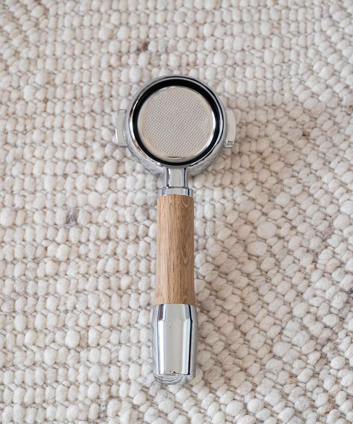 Nasz uchwyt o designie "Elegant" wyposażony jest w oryginalne głowice portafiltra od ECM, podczas gdy wszystkie pozostałe portafiltry mają głowice ze stali nierdzewnej. Każdego dnia nasz uchwyt zapewnia wyjątkowe doznania dotykowe. Nasze drewno jest ręcznie traktowane organiczną twardą olejką, aby zachować naturalne odczucie drewna.