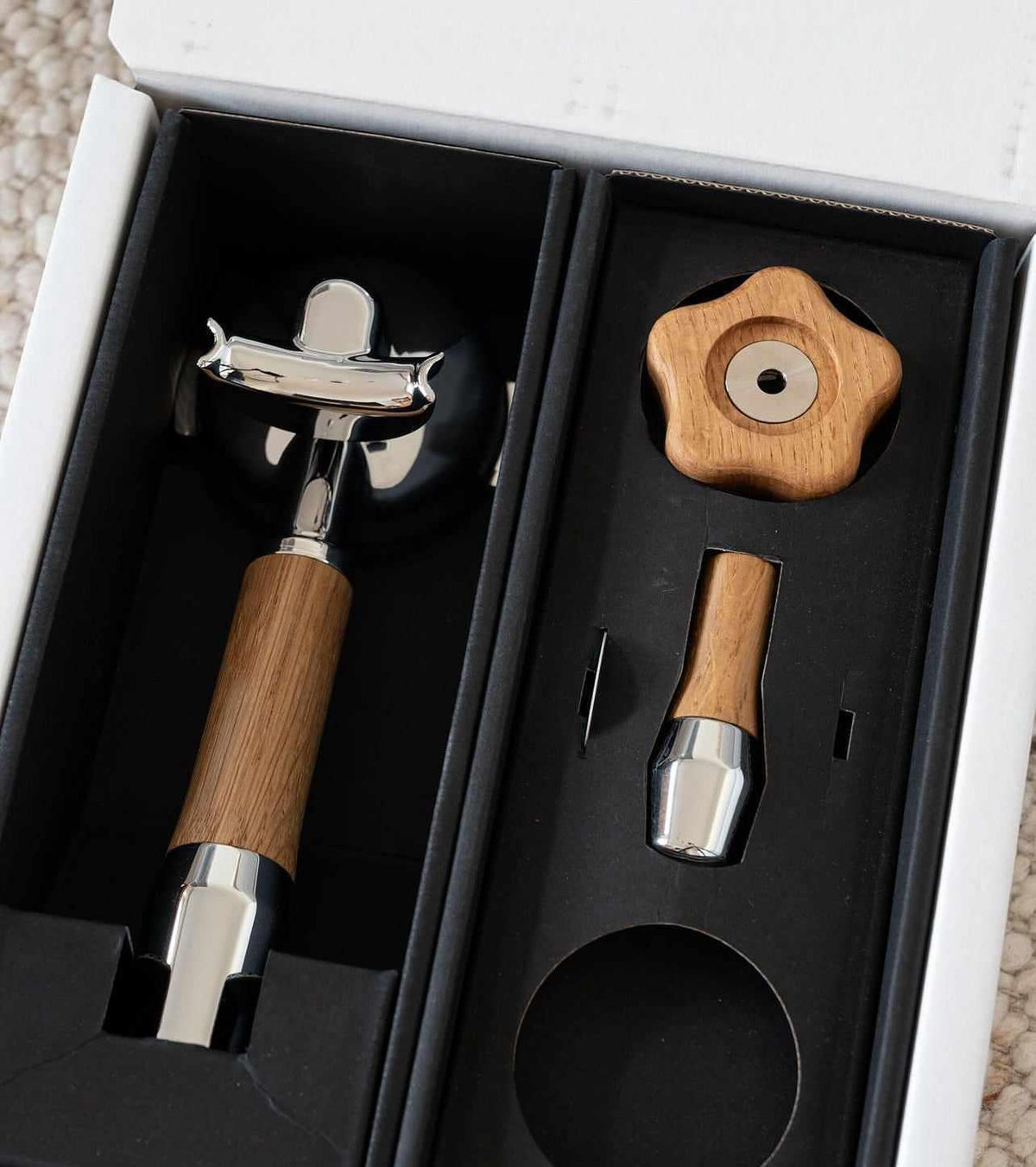 Ten uchwyt jest dla tych, którzy chcą nadać swojej maszynie unikalny charakter i ulepszyć standardowy plastikowy uchwyt na coś, co zarówno wygląda, jak i sprawia wrażenie ekskluzywnego. Doświadcz codziennie dotykowego komfortu – portafilter, który podnosi jakość parzenia i pozwala Twojej maszynie odzwierciedlać Twoją pasję do jakości i designu.